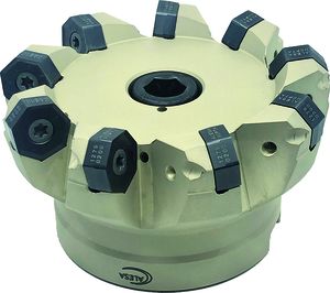 在 45°HEPTA面銑刀 都配備了總共14個(gè)切削刃(2×7)雙面可轉(zhuǎn)位刀片。鋒利的磨削邊緣需要較少的主軸功率并且工藝友好。每個(gè)邊緣都有一個(gè)用于高質(zhì)量表面的磨光階段。不均勻的節(jié)距以及剝離切削過程和良好的平衡是 5 軸加工中心銑削過程的理想環(huán)境。