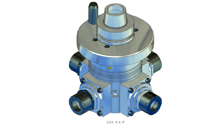 G03 系列的角頭具有多達四個加工主軸。所有刀架的主軸旋轉(zhuǎn)方向始終與驅(qū)動器的旋轉(zhuǎn)方向相同。驅(qū)動速度以 1:1.55 的比例傳遞到刀架。間歇運行時主軸最高轉(zhuǎn)速可達 18,000 rpm。