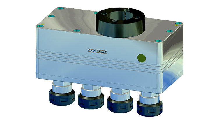 帶有夾緊環(huán) B100 的 VS16 齒輪箱也可以由鉆孔主軸 B045 和驅(qū)動單元 D045 驅(qū)動。此外,使用我們的驅(qū)動適配器 DN 和 DMN 可以適應(yīng)機(jī)床主軸以及 GROTEFELD 旋轉(zhuǎn)單元 DVM。