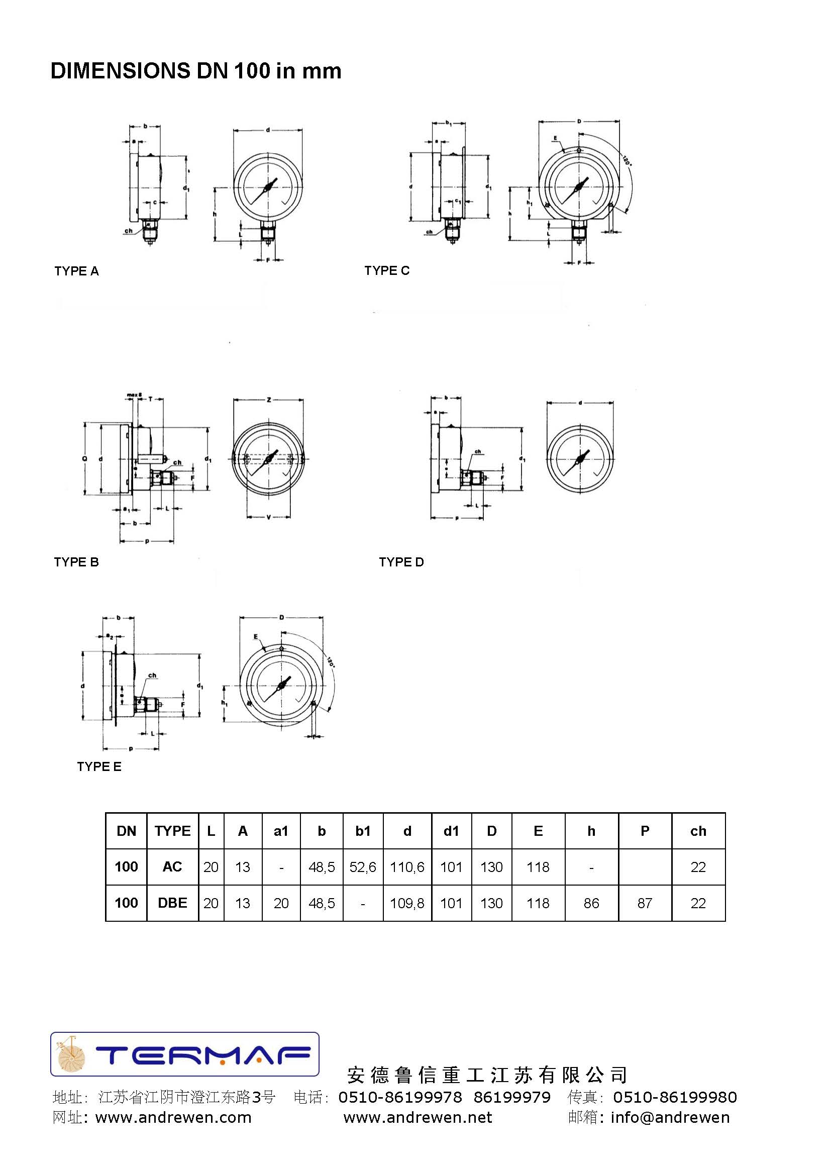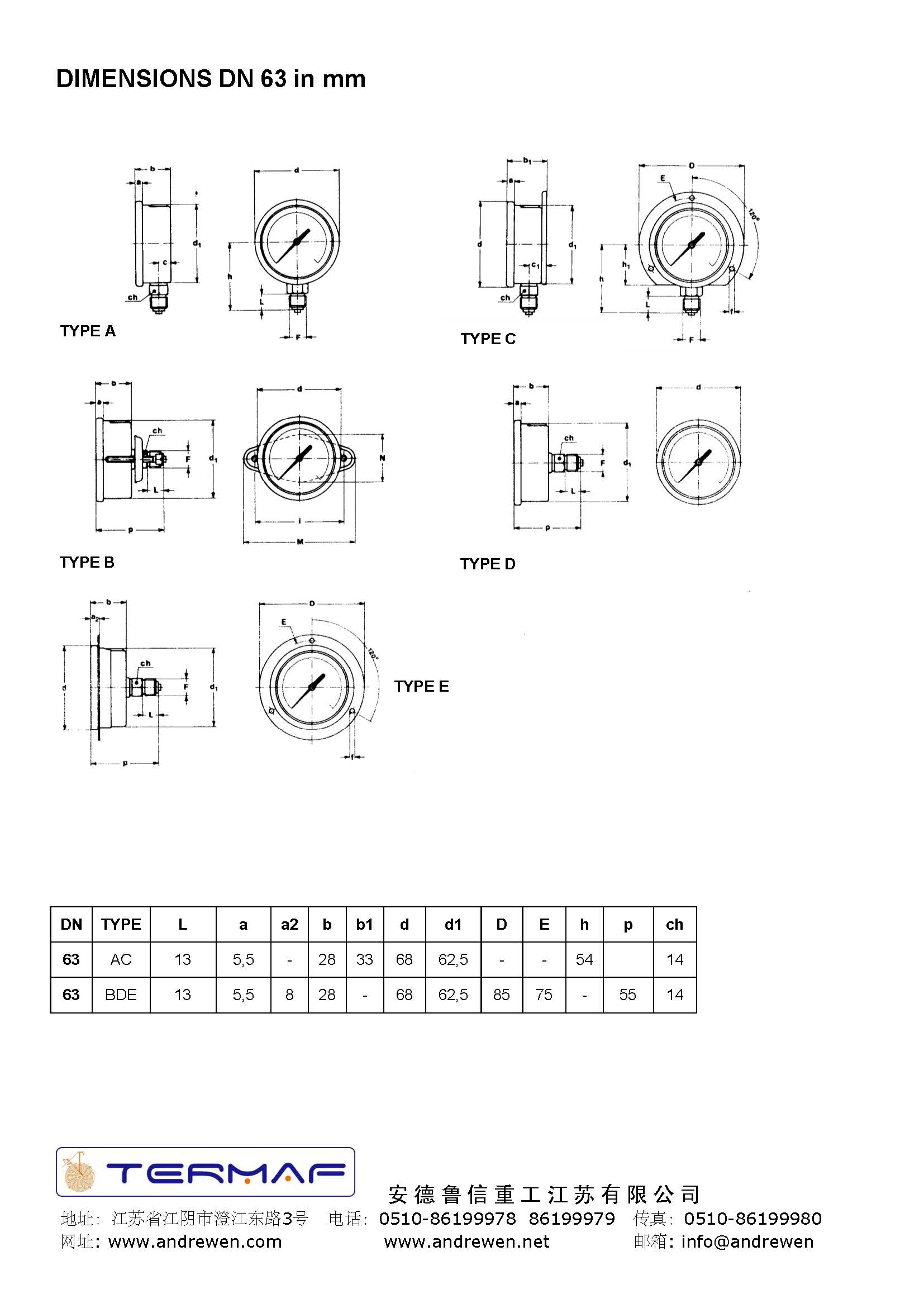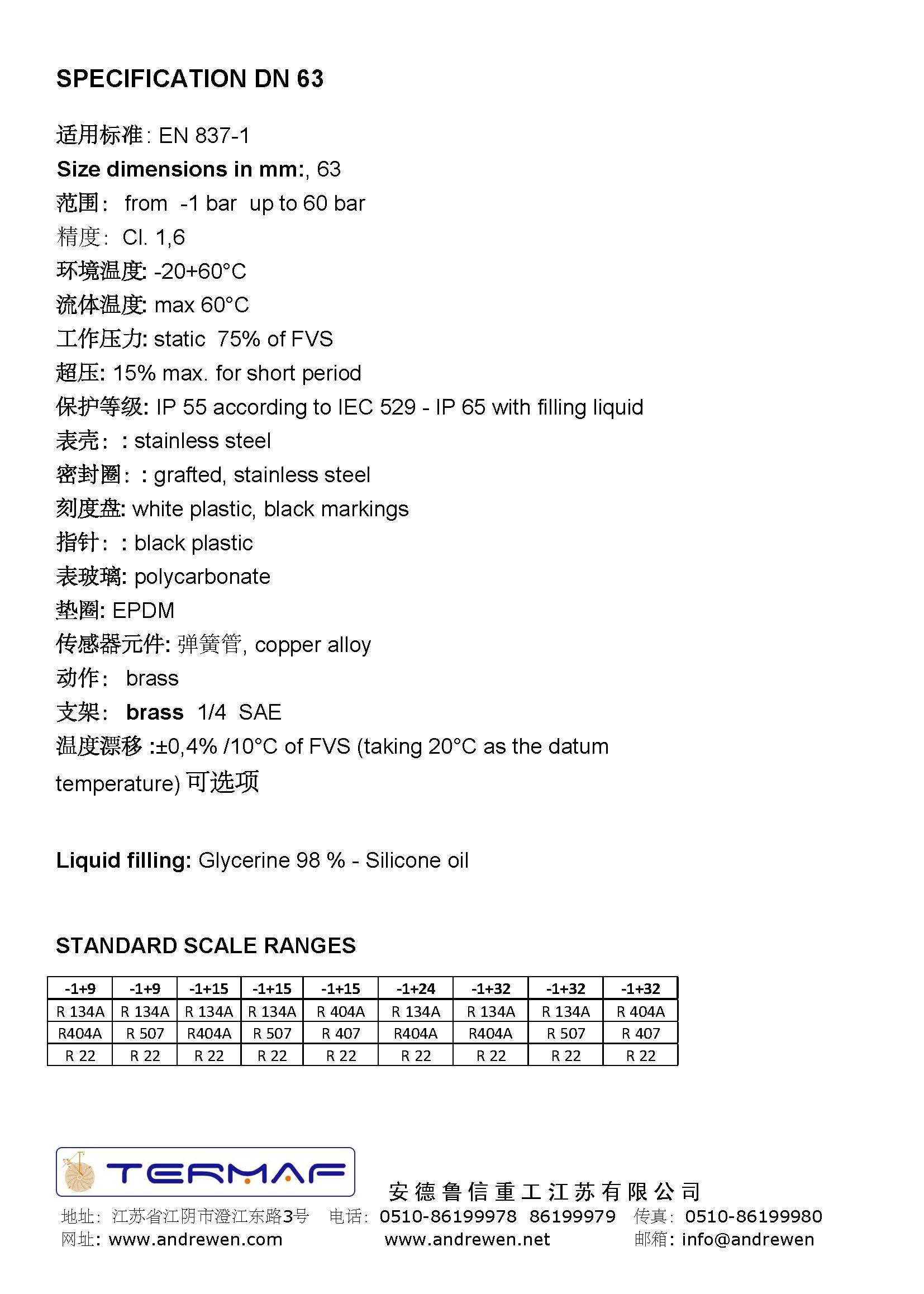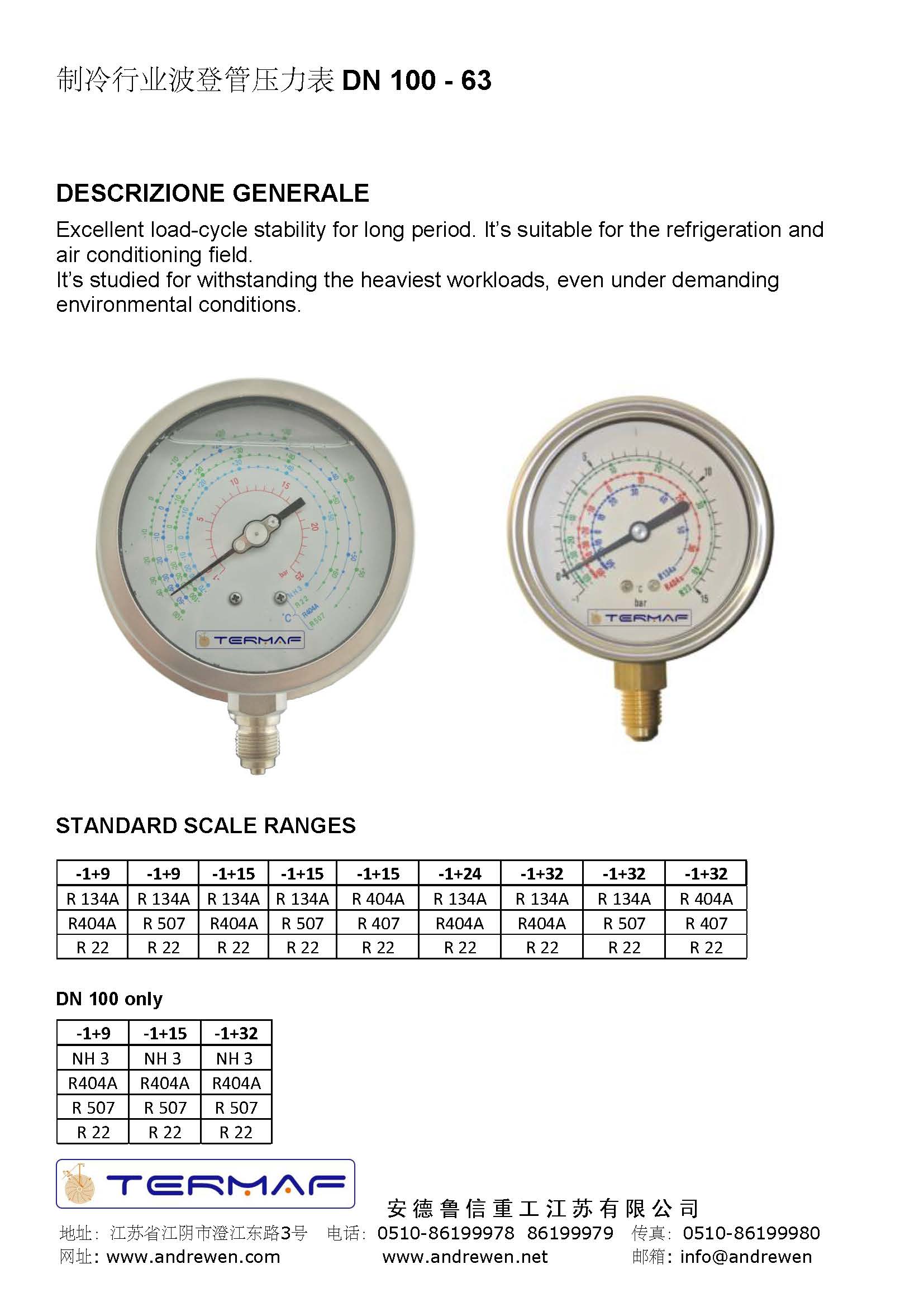 制冷行業(yè)波登管壓力表 DN 100 - 63-意大利TERMAF