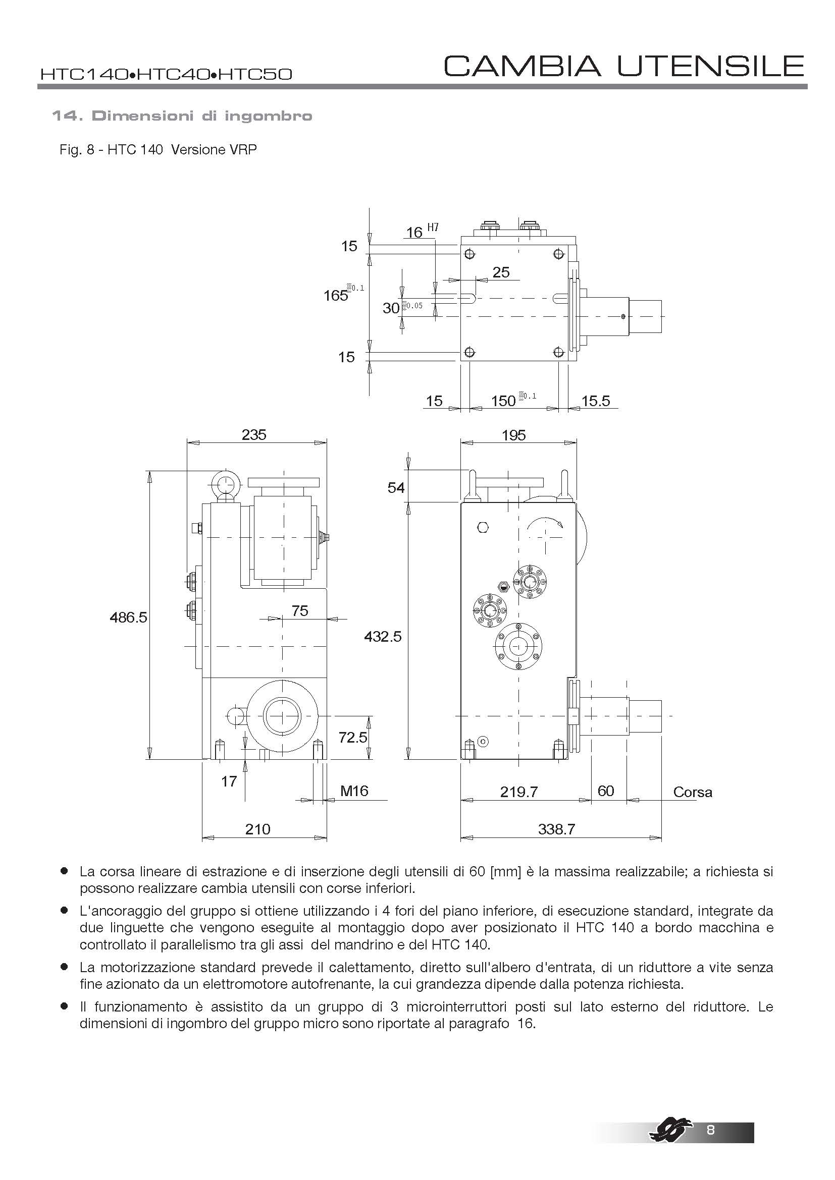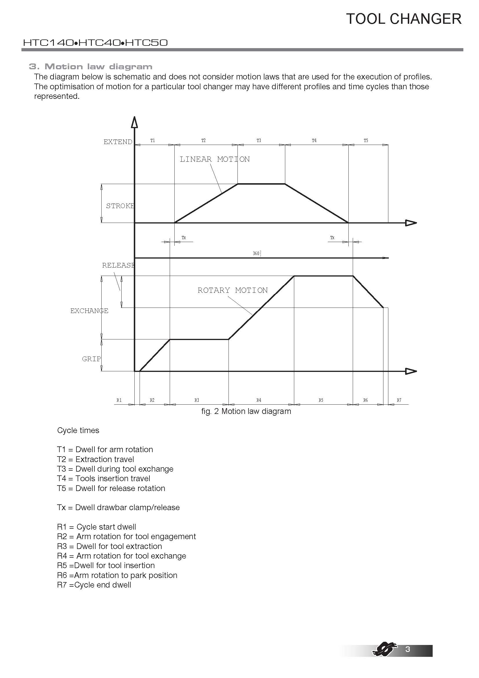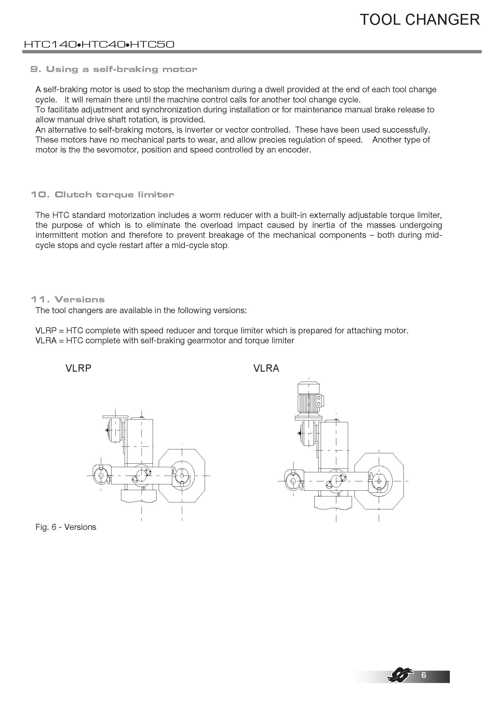 COLOMBO FILIPPETTI spa 的 HTC(臥式換刀裝置)是機械式且完全自主的換刀裝置,它通過凸輪機構將齒輪電機裝置提供的均勻傳入旋轉運動轉換為一系列有序的間歇線性輸出軸的旋轉運動,工具夾具的臂鍵鎖在輸出軸上。